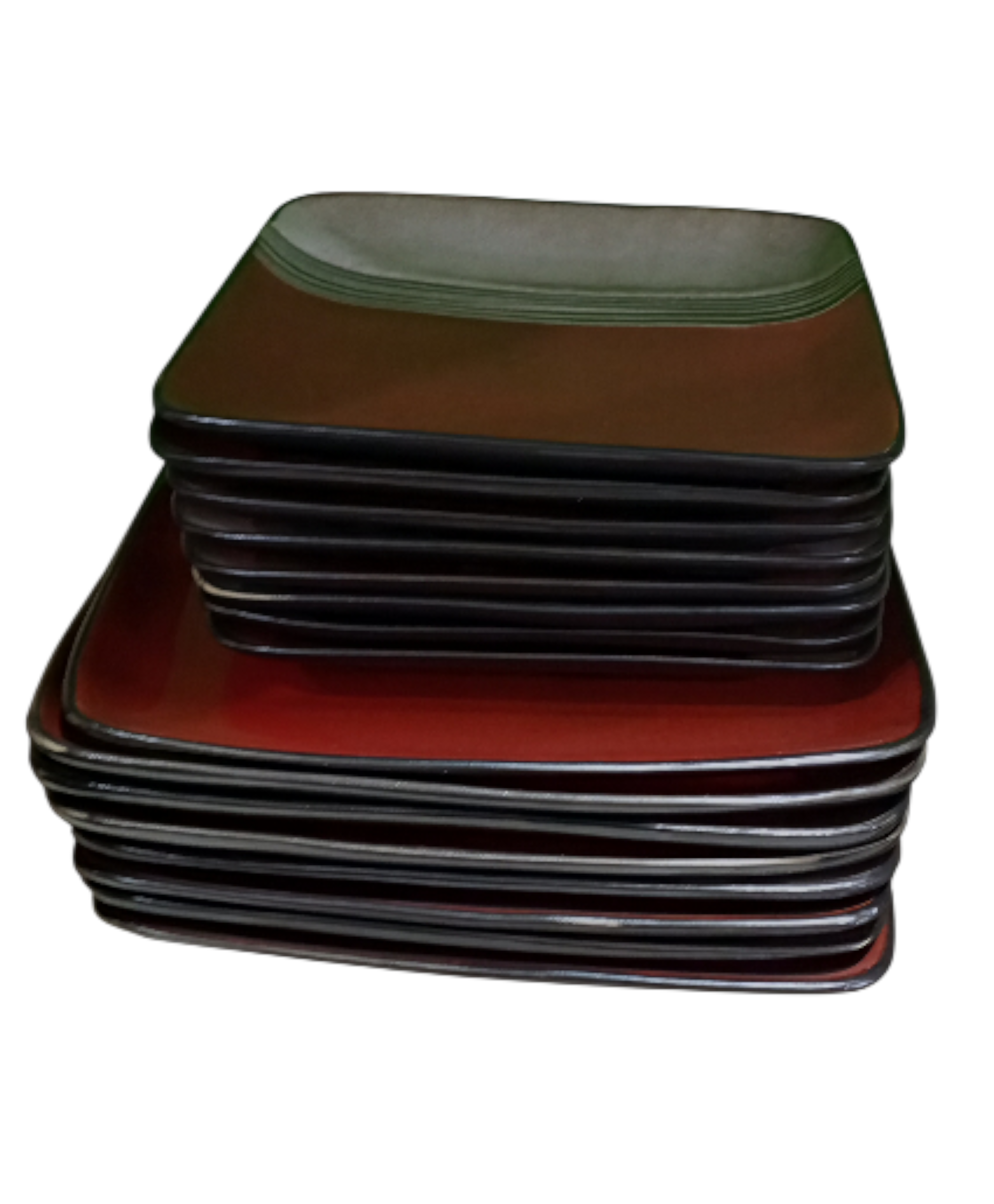 Assiettes carrées bicolores en céramique, soigneusement conçues pour allier design, qualité et durabilité. Leur finition rouge-brun en dessous et gris texturé sur le dessus crée un contraste unique qui attire le regard et met parfaitement en valeur vos plats.